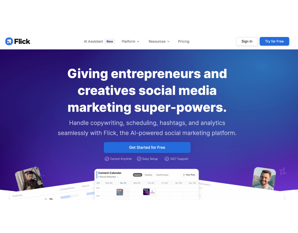 Flick is a social media assistant that helps speed up the brainstorming, writing, and planning process for your content. With a free version and paid plans ranging from $13 to $55 per month, Flick can help you generate original and engaging content ideas based on your topics within seconds. It also provides analytics, hashtag research, and scheduling capabilities (though we recommend using the native scheduling tools within each platform, as some platforms are still particular about third-party scheduling tools). Flick is a robust tool, but it does come with a cost that may not fit every small business’s budget. However, it’s worth checking out if you’re looking for a comprehensive solution.